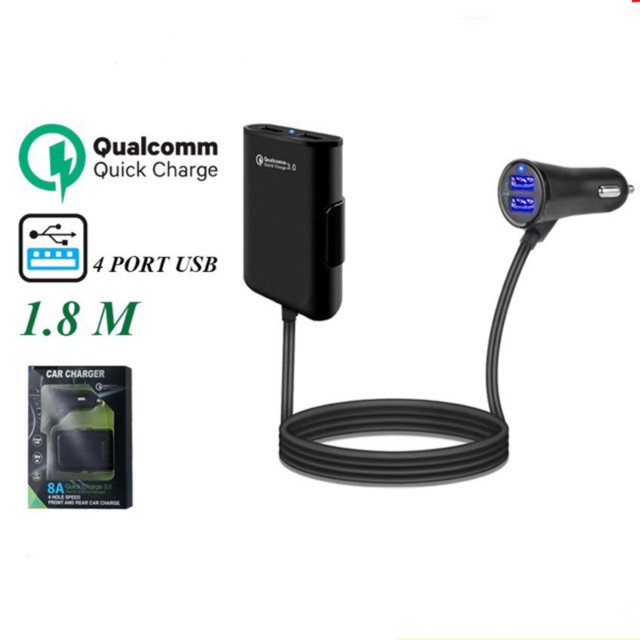 Qualcomm 3 0 8a Quick Fast Car Charger 4 Usb Mobile Phone Charges Kereta 1 8meter 36w Accessories Shopee Malaysia