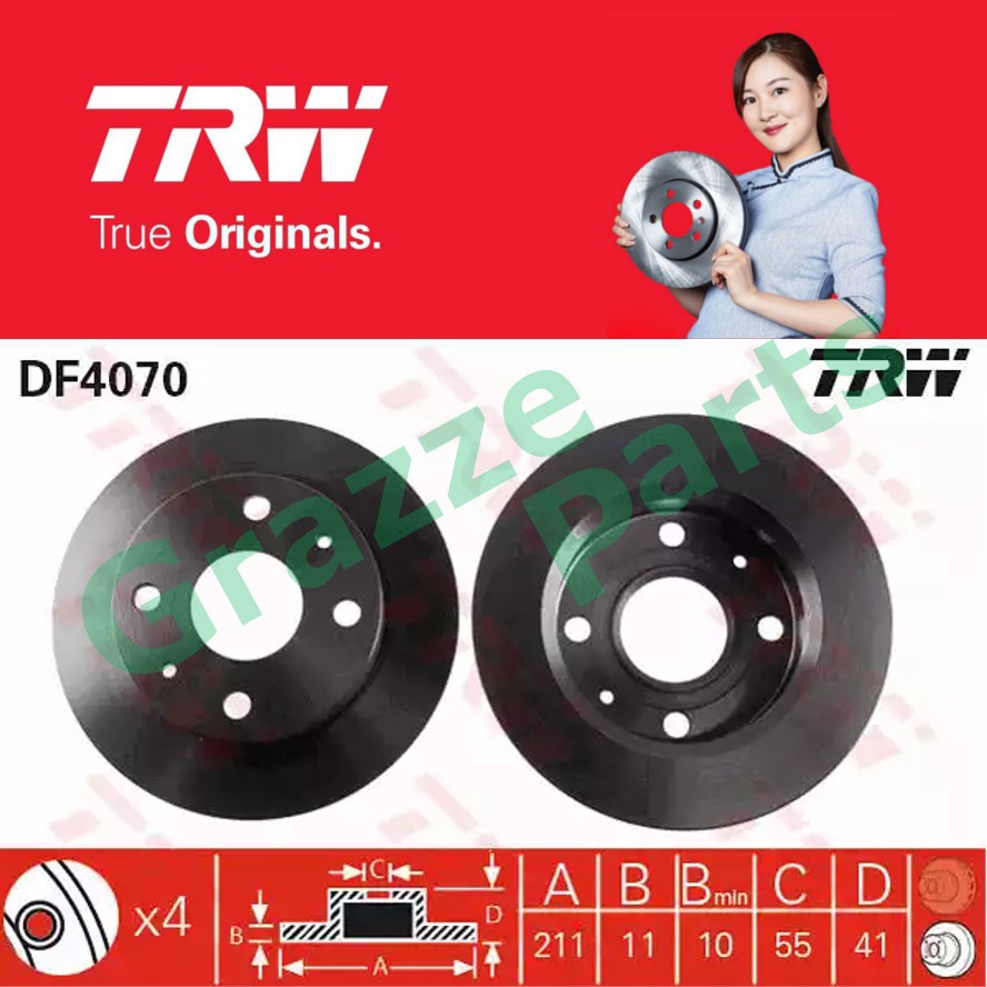 2 Pcs Trw Disc Brake Rotor Front For Df4070 Perodua Kelisa Kenari Viva 211mm