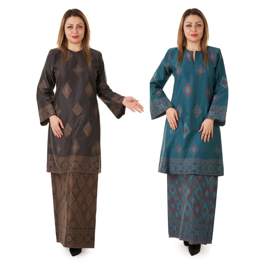 Baju Kurung Pahang Hawa Cotton Satin Songket Print Butik Sireh Pinang Model Pakaian Gaya Busana Model Baju Wanita